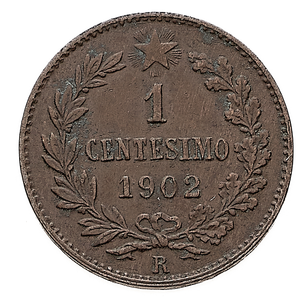 1 Centesimo Valore 1902 - Zecca: Roma - Diritto: effigie del Re a sinistra - Rovescio: valore e data entro due rami di alloro e di quercia - gr. 0,99 - Molto rara - SPL