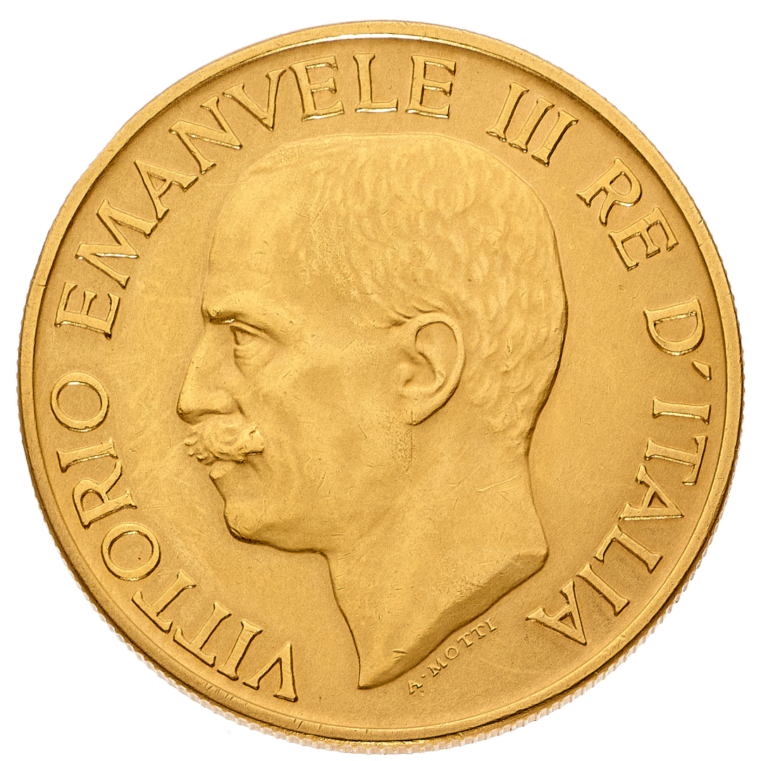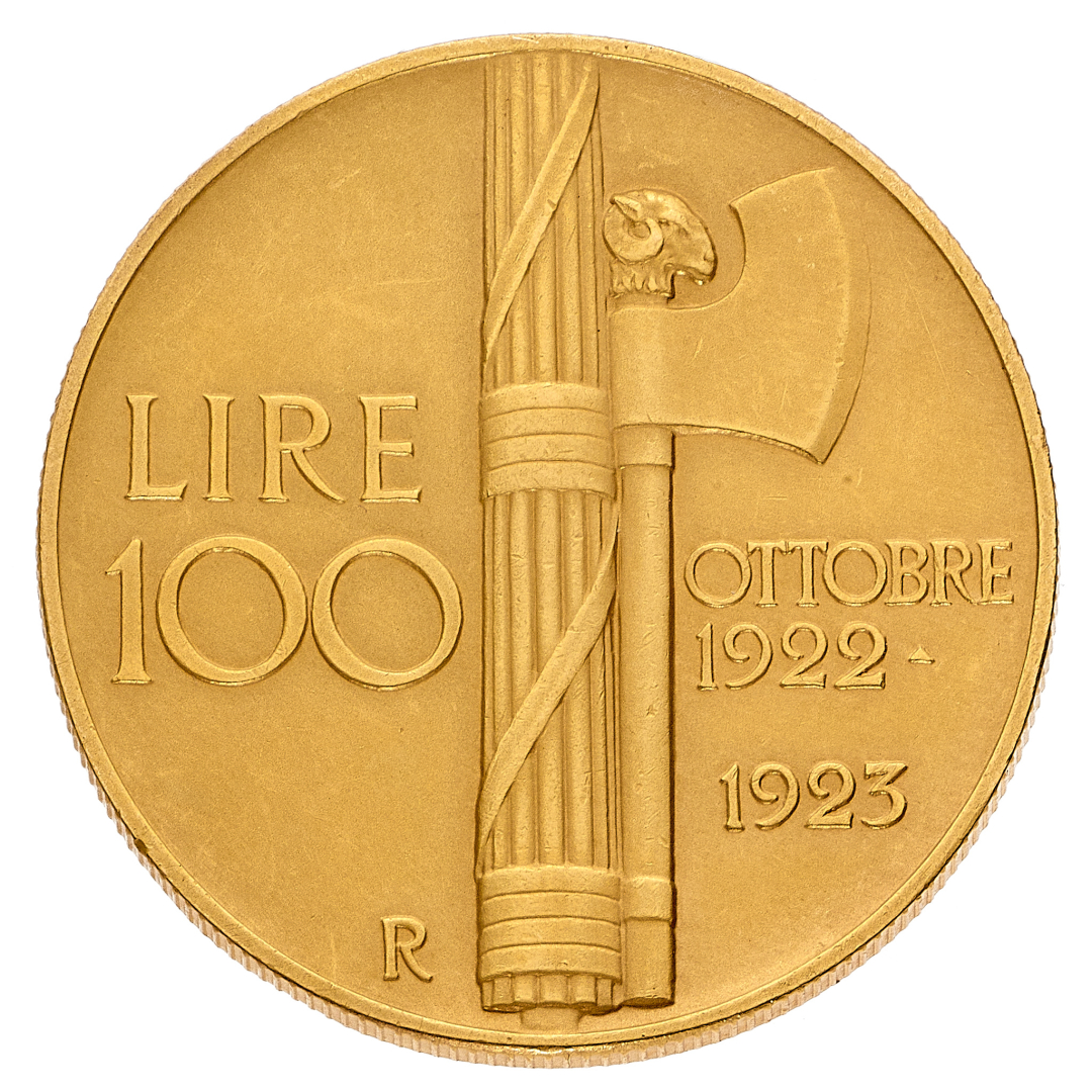 100 Lire Fascio 1923 - Zecca: Roma - Diritto: effigie del Re a sinistra - Rovescio: fascio littorio con scure a destra - gr. 32,23 - q.FDC