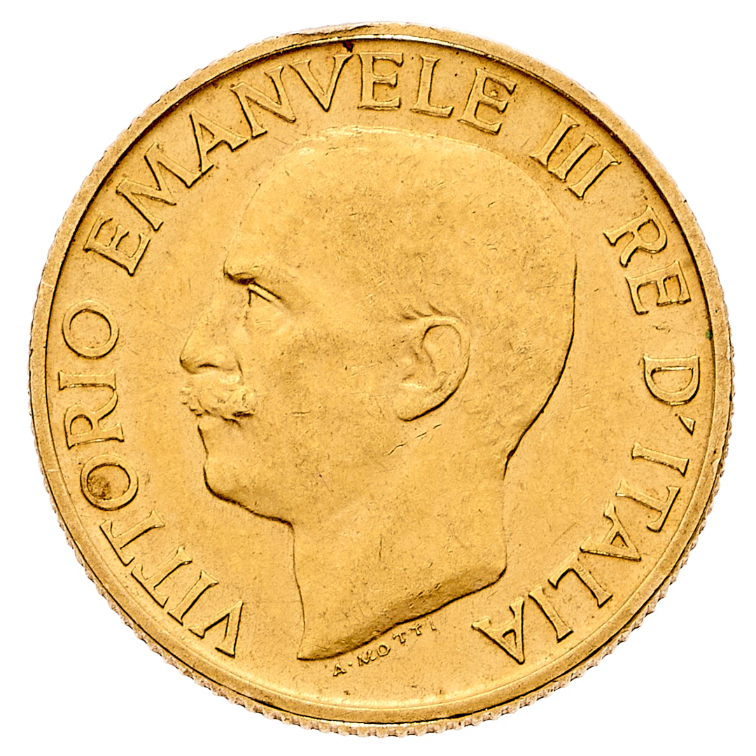 20 Lire Fascio 1923 - Zecca: Roma - Diritto: effigie del Re a sinistra - Rovescio: fascio littorio con scure a destra - gr. 6,45 - Lievi colpetti sul contorno, SPL