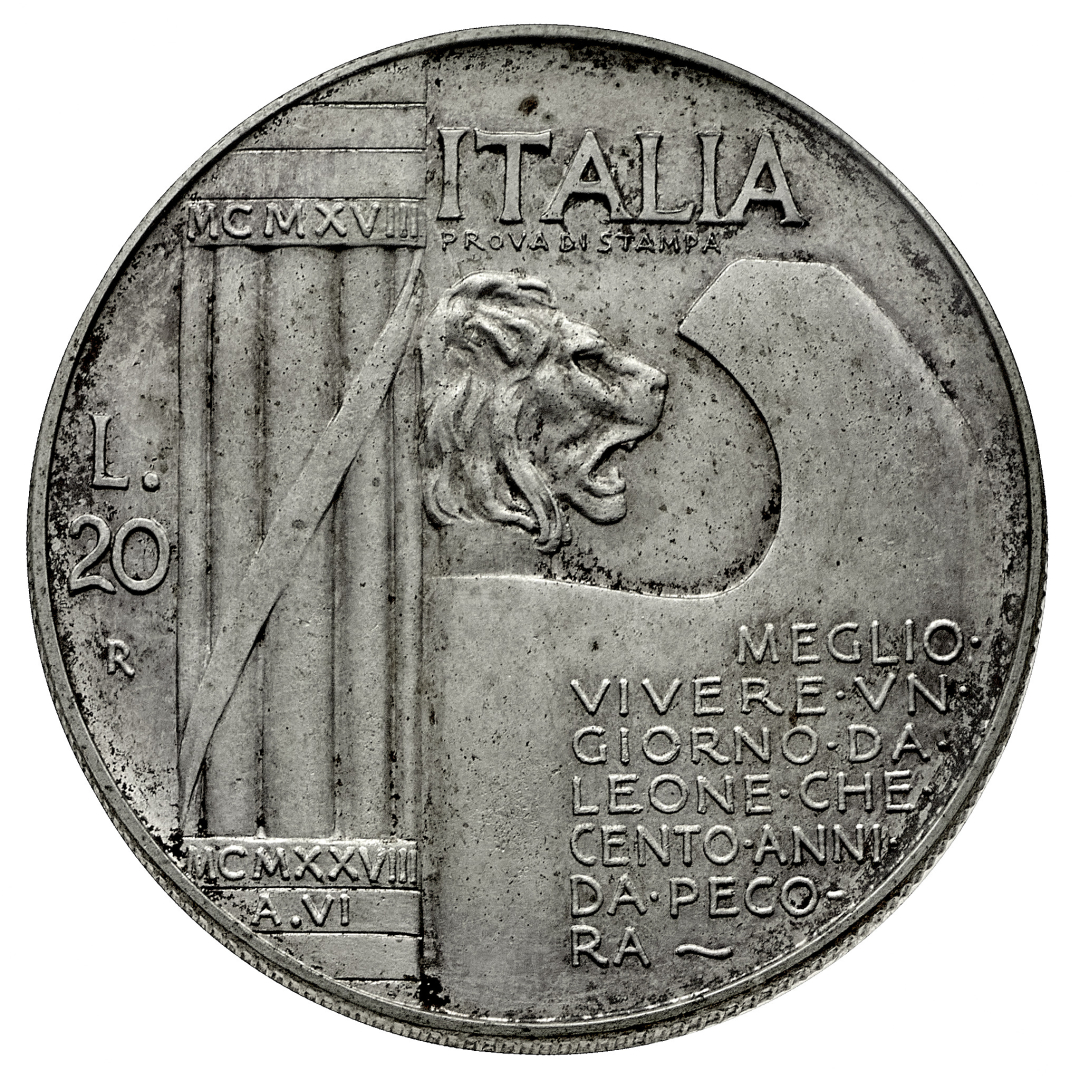 20 LIRE ELMETTO 1928 PROVA DI STAMPA
