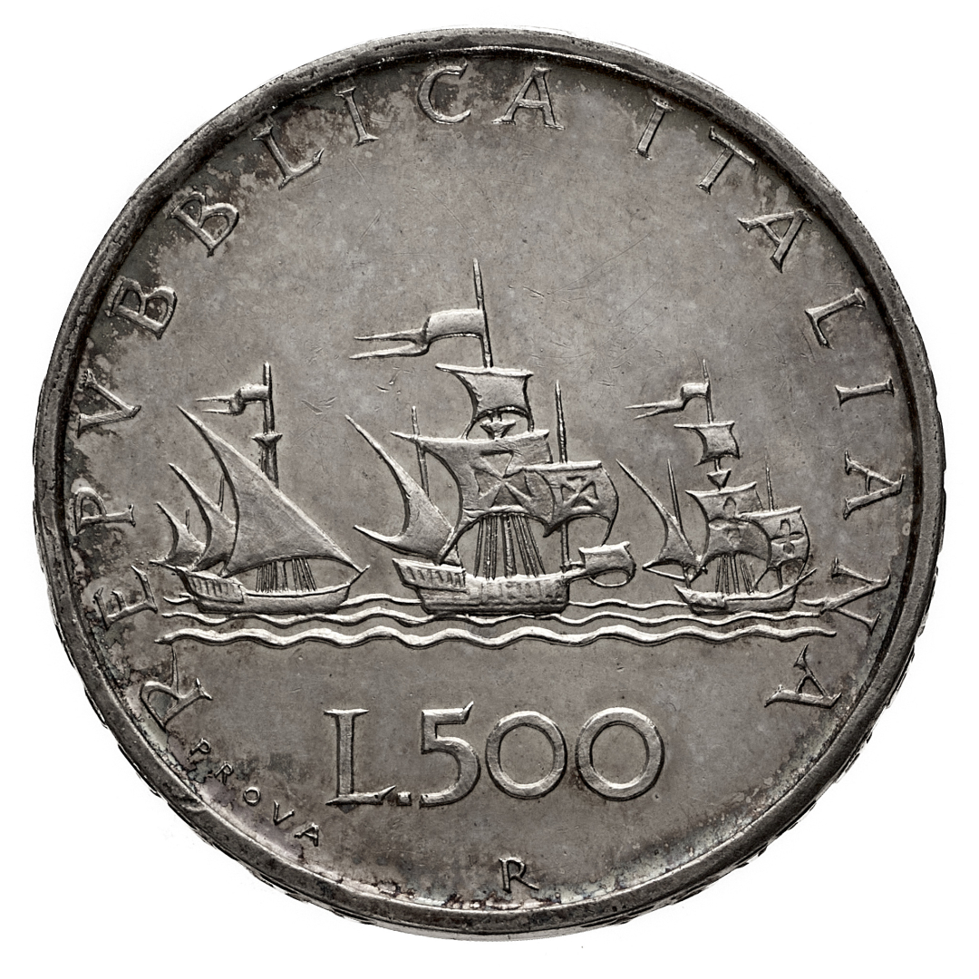 500 LIRE CARAVELLE "BANDIERE ROVESCIATE" 1957
