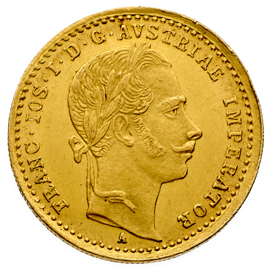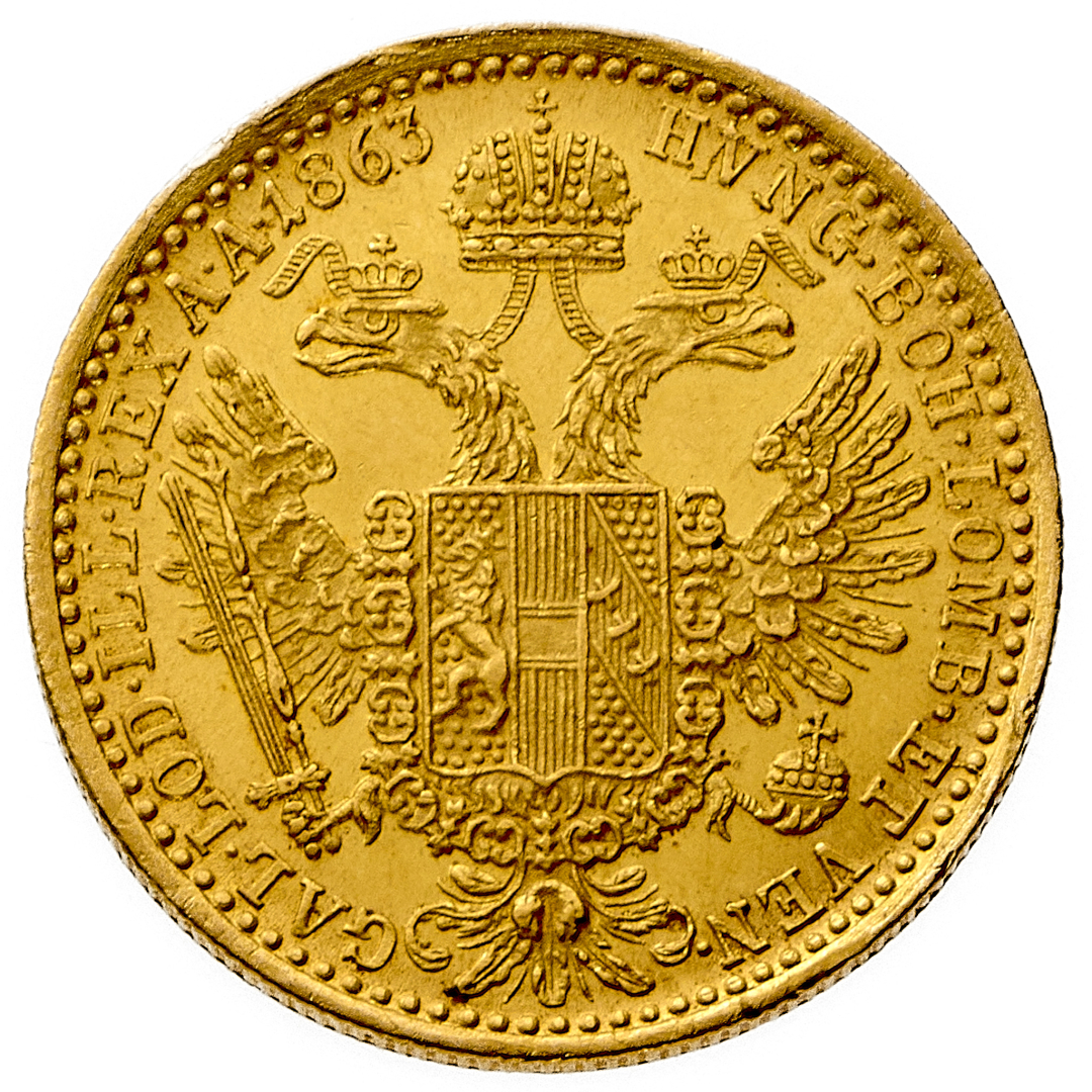 Franz Joseph I (1848-1916) - Ducato 1863 - Zecca: Vienna - Diritto: effigie dell'Imperatore a destra - Rovescio: aquila bicipite coronata con stemma in petto - gr. 3,49 - Fondi lucenti, migliore di SPL
