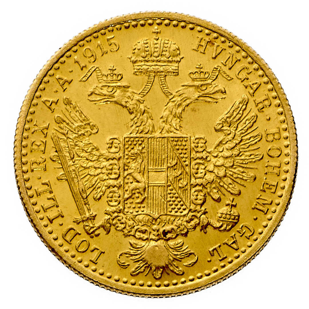 Franz Joseph I (1848-1916) - Ducato 1915 - Zecca: Vienna - Diritto: effigie dell'Imperatore a destra - Rovescio: aquila bicipite coronata con stemma in petto - gr. 3,50 - Contromarca al diritto "Bosnian sword" - q.FDC