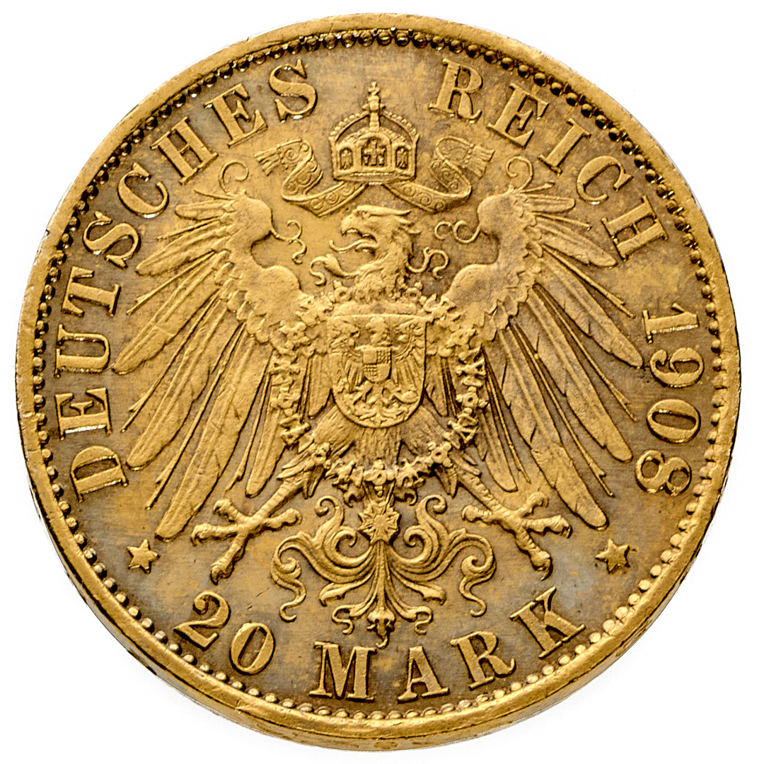 Preussen - Wilhelm II (1888-1918) - 20 Marchi 1908 - Zecca: Berlino - Diritto: effigie dell'Imperatore a destra - Rovescio: aquila imperiale coronata - gr. 7,98 - q.FDC