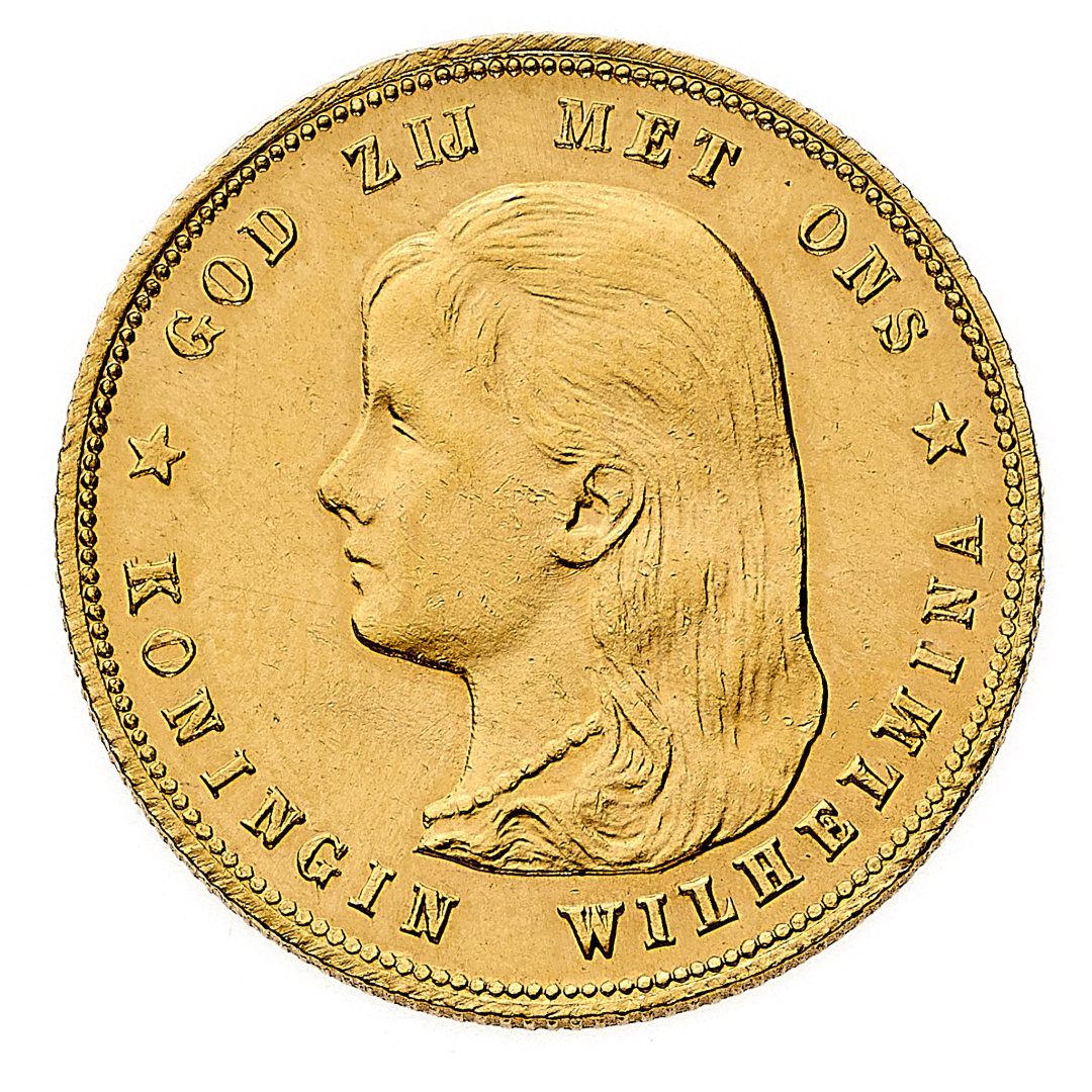 Wilhelmina (1890-1948) - 10 Gulden 1897 - Zecca: Utrecht - Diritto: effigie del Re a destra - Rovescio: stemma coronato - gr. 6,73 - q.FDC