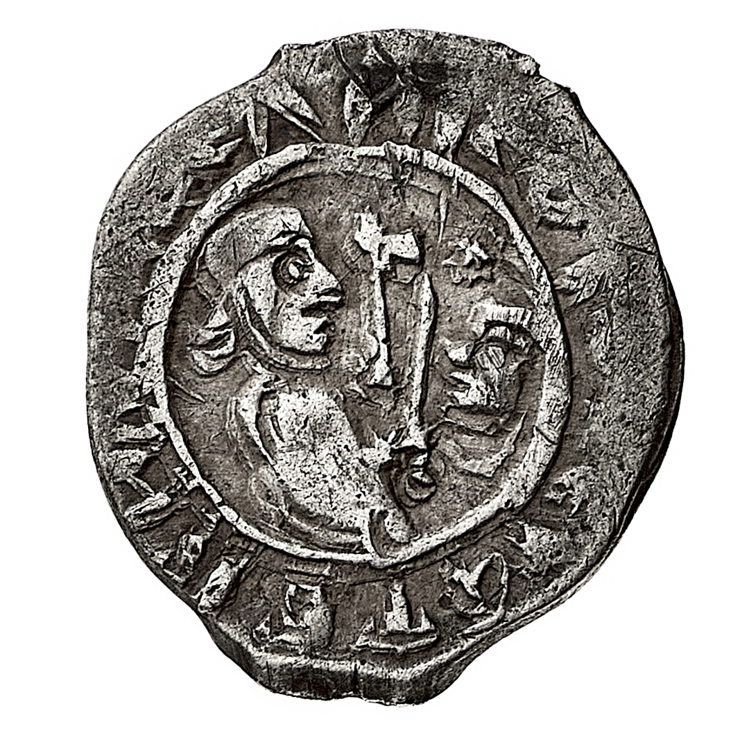 Dmitry Donskoy (1362-1389) - Denga databile al periodo 1391-1393 circa - Diritto: guerriero a destra tiene la spada con la mano destra e un'ascia con la sinistra; di fronte a lui una testa recisa - Rovescio: legenda in arabo - gr. 1,00 - Rara - BB - Proveniente dall'asta Katz eAuction 106, 27.12.2023, n. 1205