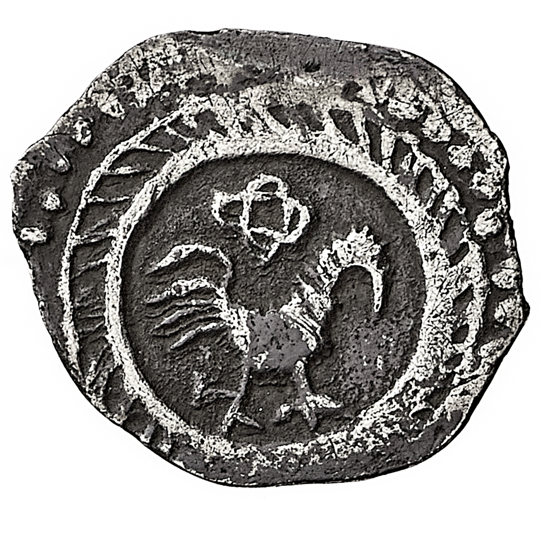 Andrey Dmitrievich (1389-1432) - Mezzo Denga - Diritto: gallo a destra - Rovescio: quattro visi contrapposti - gr. 0,29 - Molto rara - BB - Proveniente dall'asta Katz eAuction 25, 24.9.2019, n. 3139