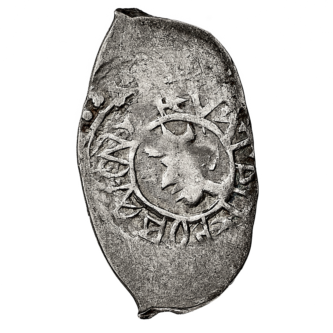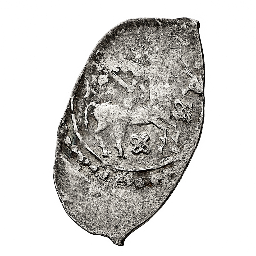 Peter Dmitriewitsch (1389-1428) - Denga - Diritto: testa coronata del Sovrano a sinistra - Rovescio: centauro a destra - gr. 0,87 - Rara - BB - Proveniente dall'asta Gorny&Mosch 234, Monaco di Baviera 8.10.2015, n. 6014