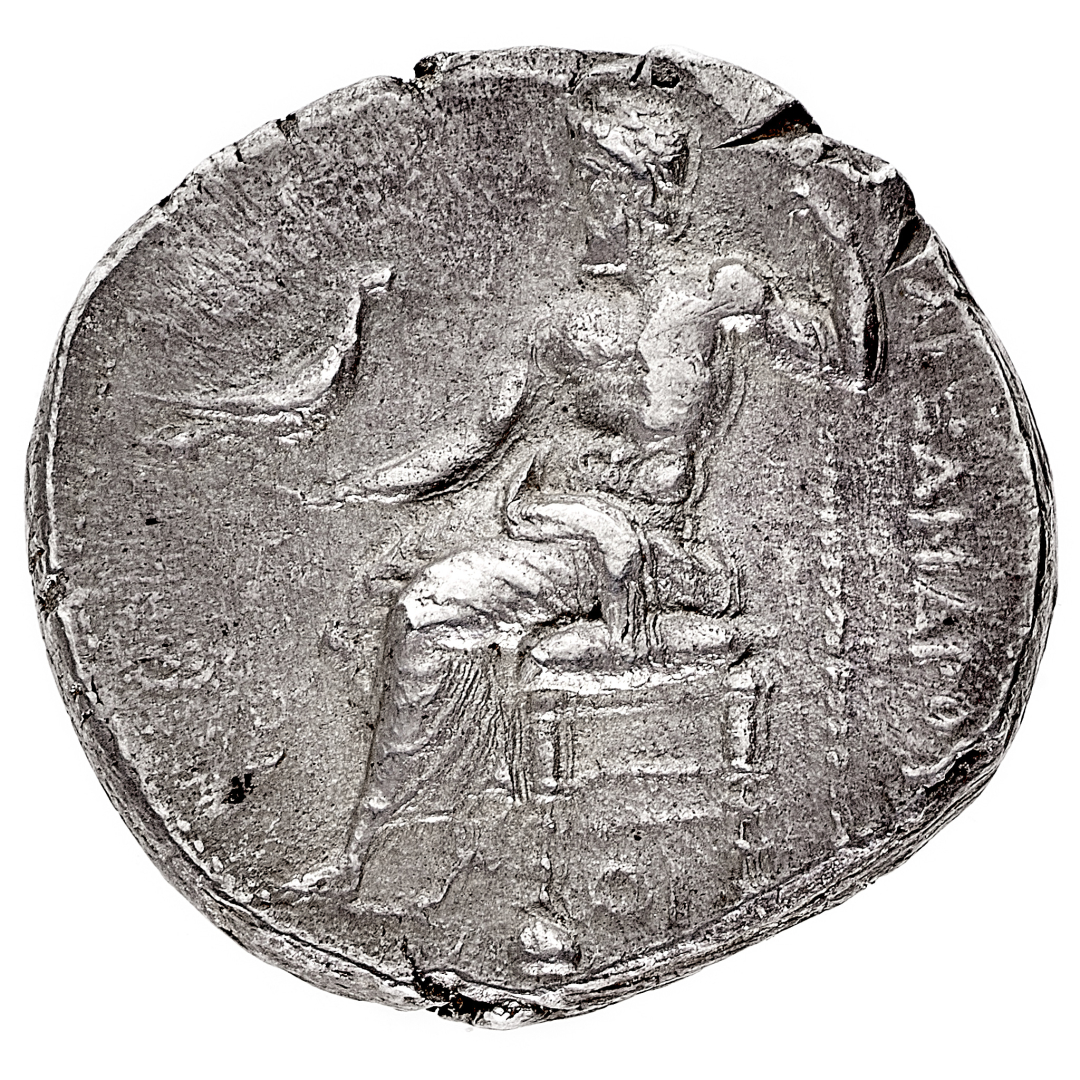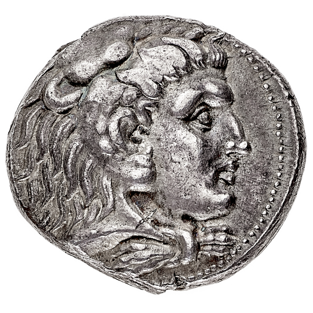 Tolomeo I Soter, come Satrapo (323-305 a.C.) - Tetradramma databile al periodo 320-315 a.C. - Zecca: Byblos - Diritto: testa di Eracle a destra ricoperta dalle fauci del leone - Rovescio: Zeus seduto a sinistra su un trono tiene un'aquila con la mano destra e un lungo scettro verticale con la sinistra; sotto il trono un monogramma - gr. 17,19 - Lieve porosità del metallo al rovescio, altrimenti q.SPL