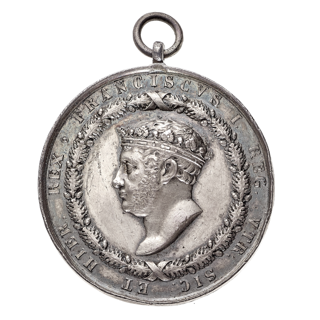 Regno delle Due Sicilie - Francesco I di Borbone (1825-1830) - Medaglia 1829 per l'Ordine Cavalleresco di Francesco I con anello di sospensione - Diametro mm. 38 e peso gr. 30,13 - Molto rara - Lievi colpetti e segni di contatto, SPL