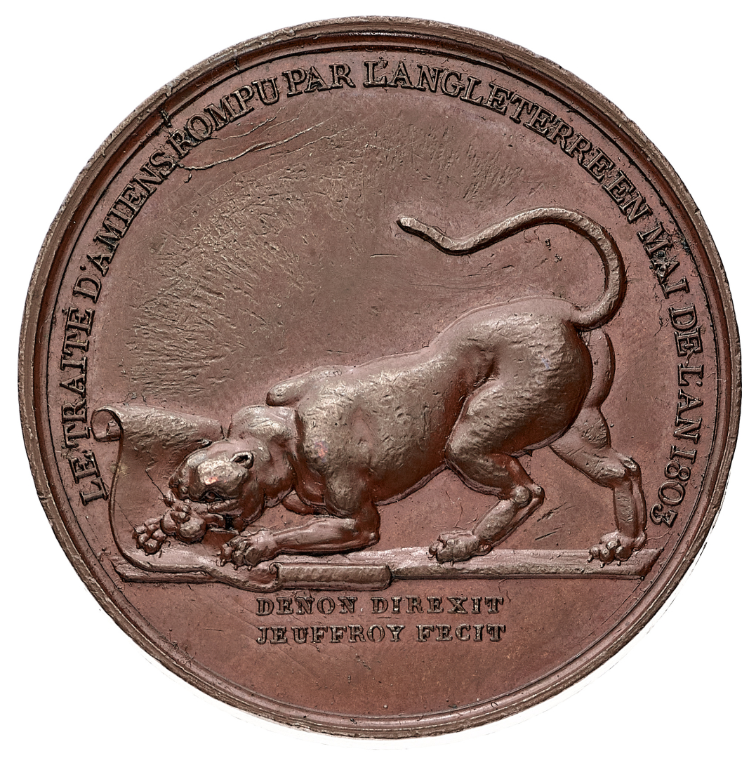 Napoleone Primo Console (1799-1804) - Medaglia 1803 commemorativa della rottura del Trattato d'Amiens - Opus Jeuffroy - Bronzo - Diametro mm. 41 e peso gr. 39,39 - Migliore di SPL