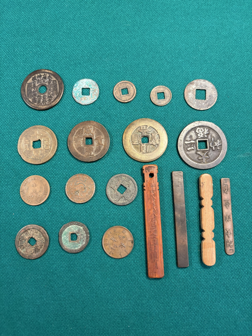 Cina - Secoli XVIII/XX - Insieme di 15 esemplari di vario modulo tra cui Charms della Cina Imperiale - In lotto con 4 lingotti monetali - Da esaminare