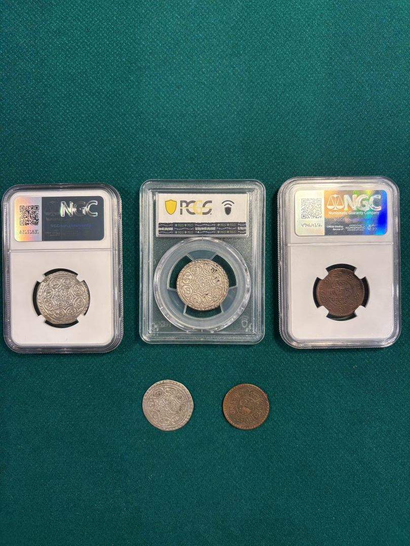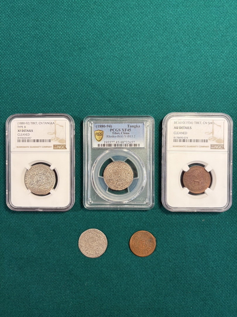 Tibet - Secoli XIX e XX - Insieme composto da 5 esemplari - Presenti due emissioni di Tangka sigillate da NGC e PCGS - Da esaminare