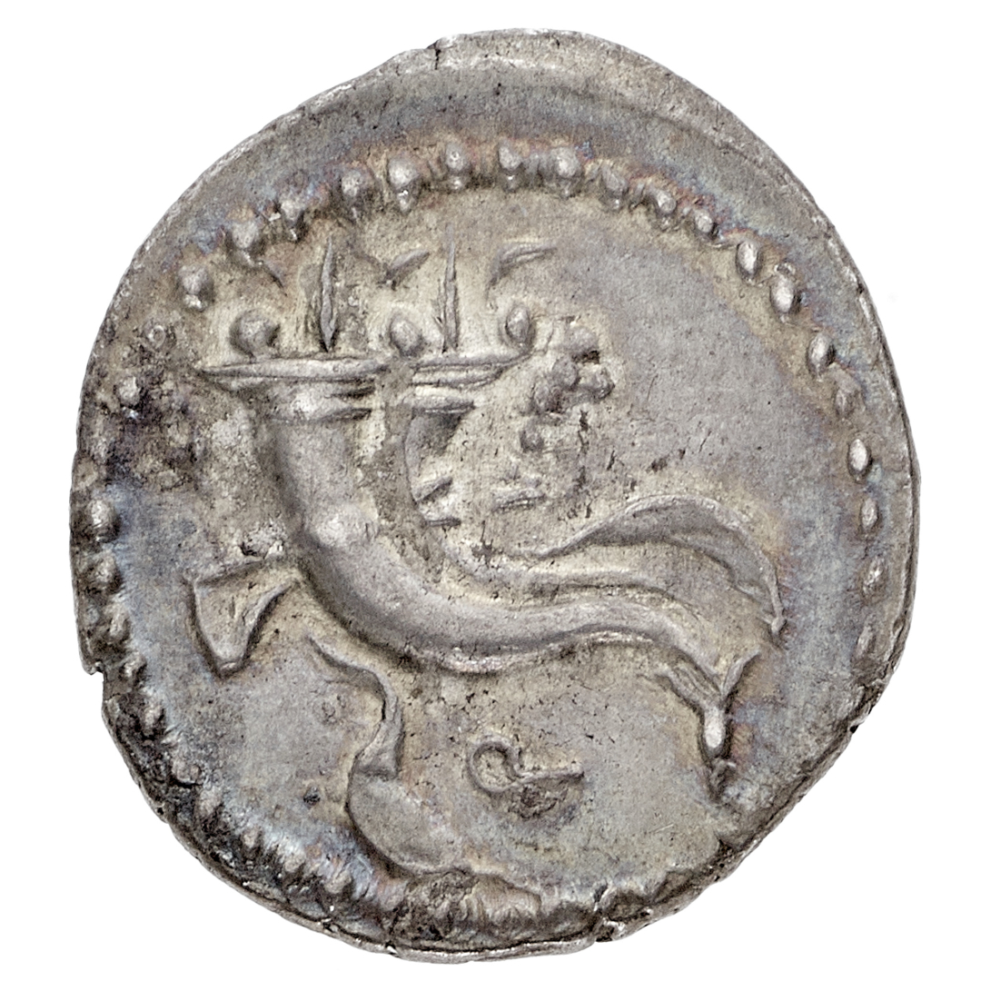 Denario con la sigla Q databile all' 81 a.C. - Zecca: incerta - Diritto: testa diademata di Venere a destra - Rovescio: due cornucopie tenute insieme da un nastro - gr. 3,67 - Non comune - Patina di medagliere, migliore di SPL - Da un appunto del collezionista, proveniente dal listino De Falco 19, n. 123