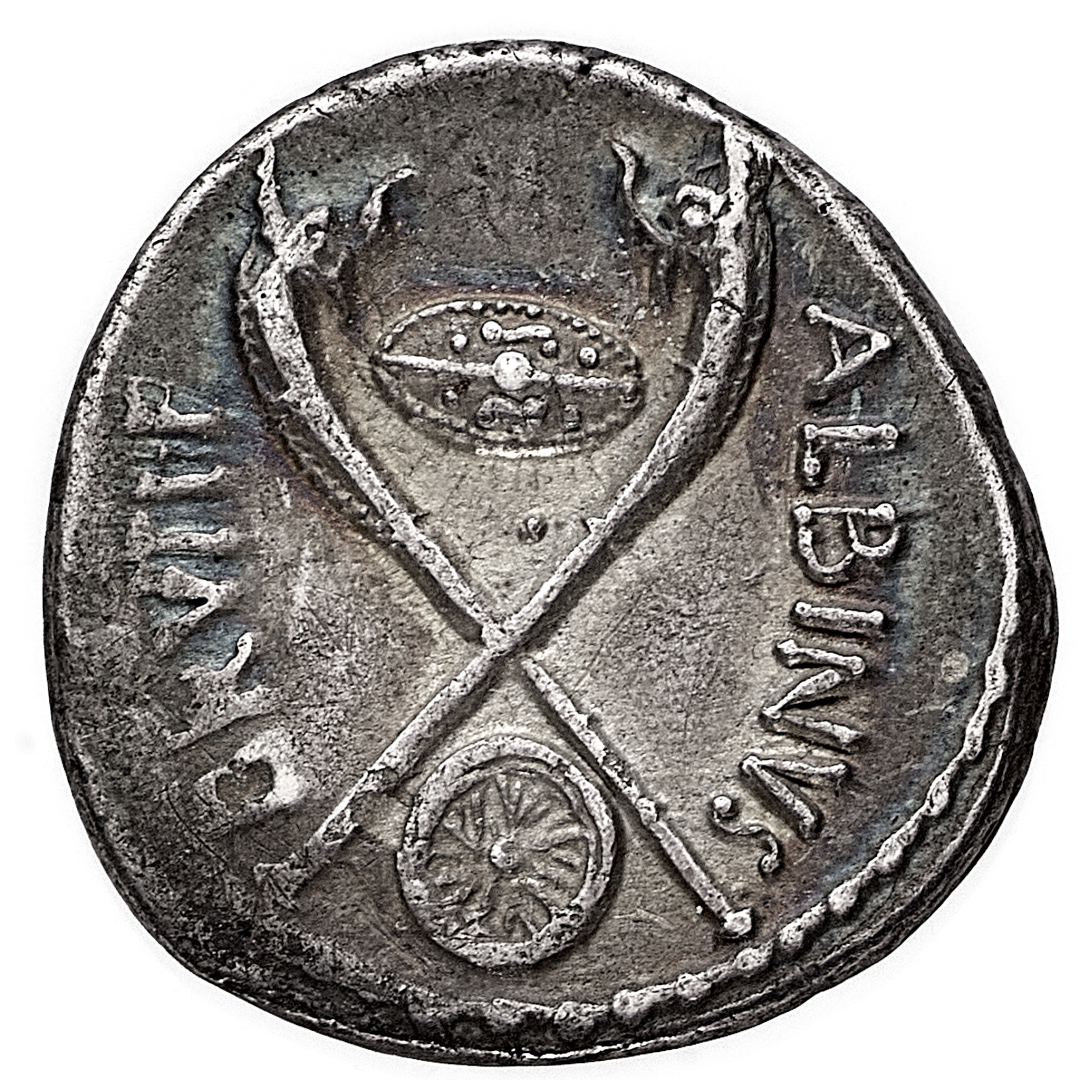 DENARIO AL NOME ALBINVS BRVTI.F DATABILE AL 48 A.C.
