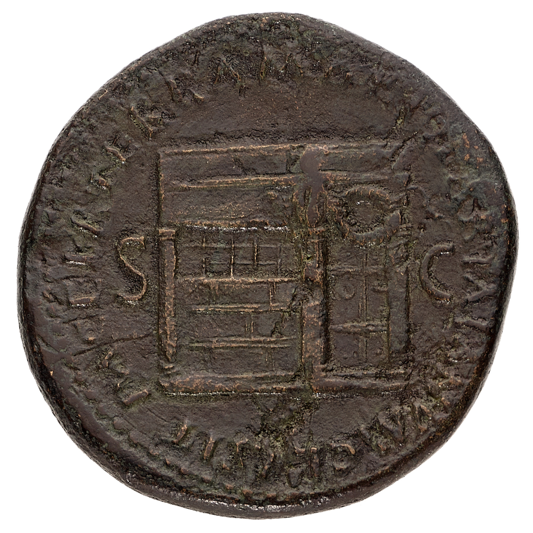 Sesterzio databile al 66 d.C. - Zecca: Roma - Diritto: testa laureata dell'Imperatore a sinistra - Rovescio: il tempio di Giano con la porta di ingresso a sinistra chiusa - gr. 24,62 - BB - Proveniente dall'asta Inasta 33, San Marino 18.2.2010, n. 655