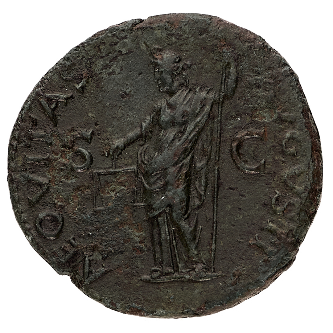 Asse databile agli anni 77-78 d.C. - Zecca: Lugdunum - Diritto: busto laureato dell'Imperatore a sinistra - Rovescio: la Aequitas stante a sinistra, tiene una bilancia con la mano destra e una lancia con la sinistra - gr. 9,51 - Lievi corrosioni al rovescio, migliore di BB