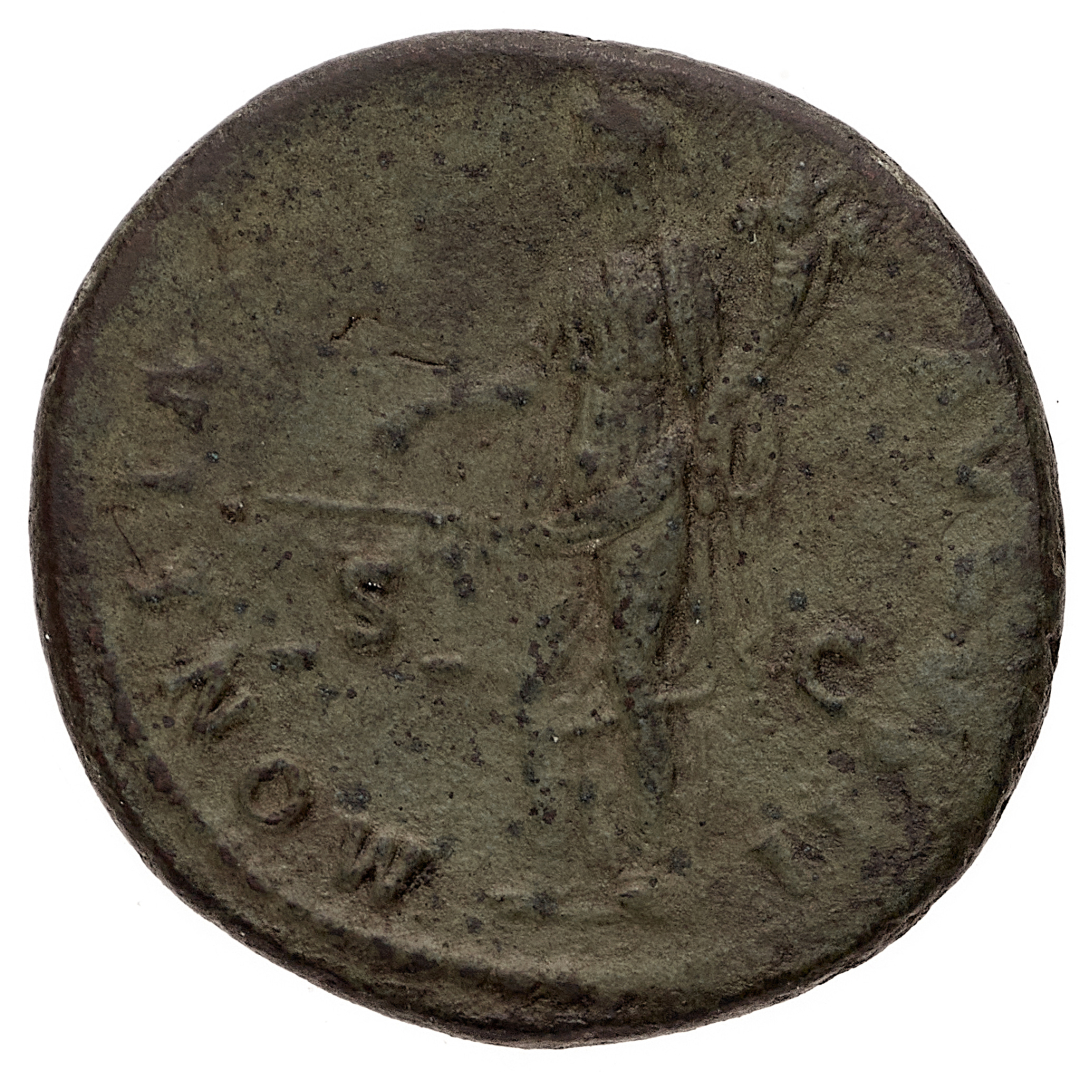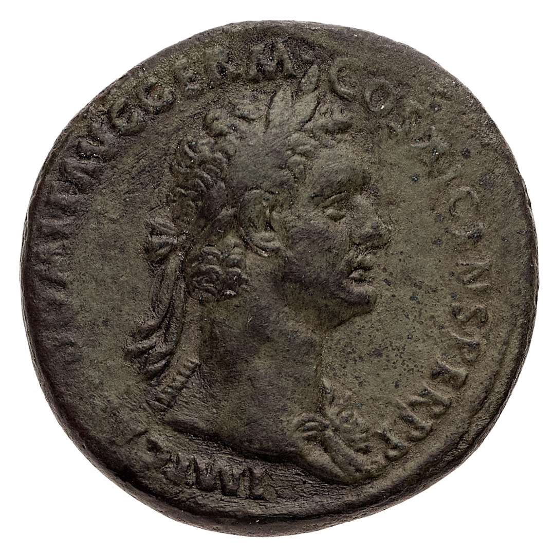 Asse databile all'85 d.C. - Zecca: Roma - Diritto: busto laureato dell'Imperatore a destra con l'egida sul collo - Rovescio: l'Aequistas stante a sinistra tiene una bilancia con la mano destra e una cornucopia con la sinistra - gr. 11,51 - BB