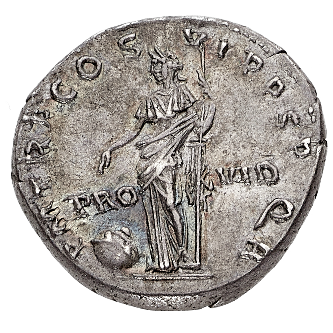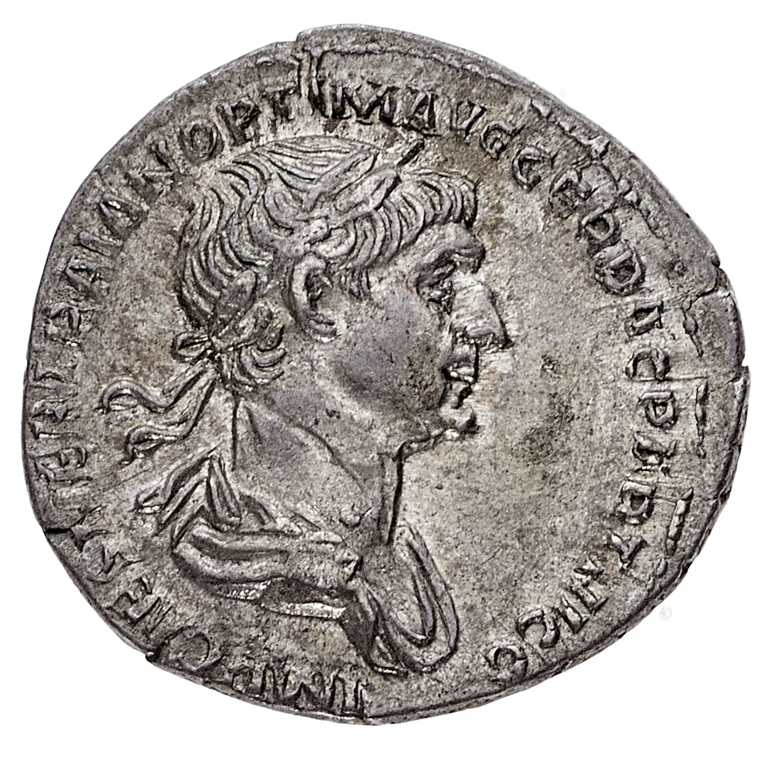 Denario databile al periodo 114-117 d.C. - Zecca: Roma - Diritto: busto laureato e drappeggiato dell'Imperatore a destra - Rovescio: la Providentia stante a sinistra tiene una bacchetta con la mano destra e uno scettro con la sinistra, ai suoi piedi un globo - gr. 3,09 - Fondi ancora lucenti, migliore di SPL