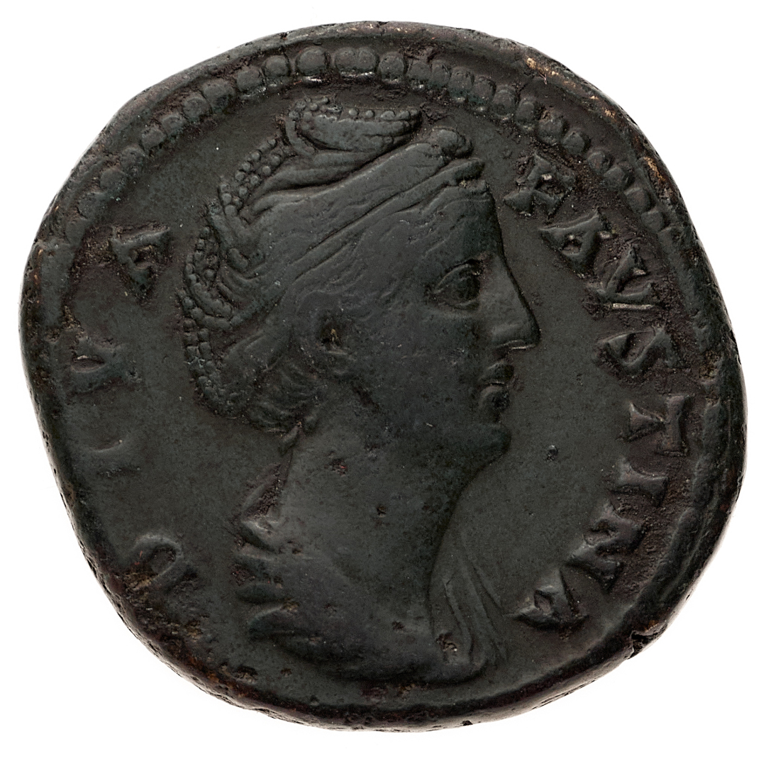SESTERZIO AL NOME E CON L'EFFIGIE DI FAUSTINA SENIOR, MOGLIE DELL'IMPERATORE, DATABILE AL 141 D.C.