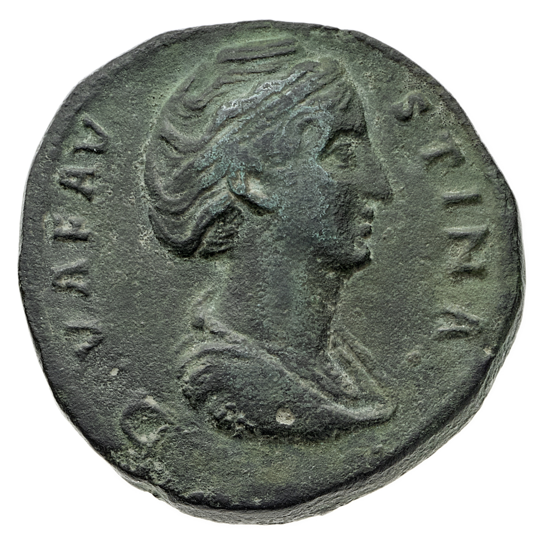 SESTERZIO AL NOME E CON L'EFFIGIE DI FAUSTINA SENIOR, MOGLIE DELL'IMPERATORE, DATABILE DOPO IL 141 D.C.