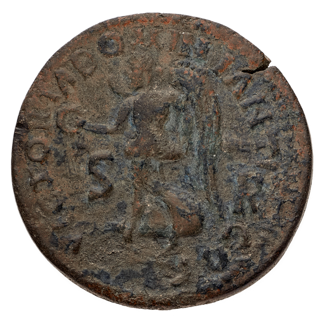 Bronzo - Zecca: Antiochia - Diritto: busto laureato, drappeggiato e corazzato dell'Imperatore a destra - Rovescio: la Vittoria in cammino verso sinistra, tiene  una ghirlanda con la mano destra - gr. 27,03 - Non comune - BB