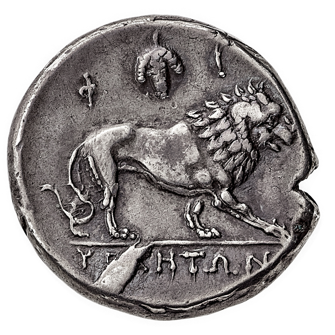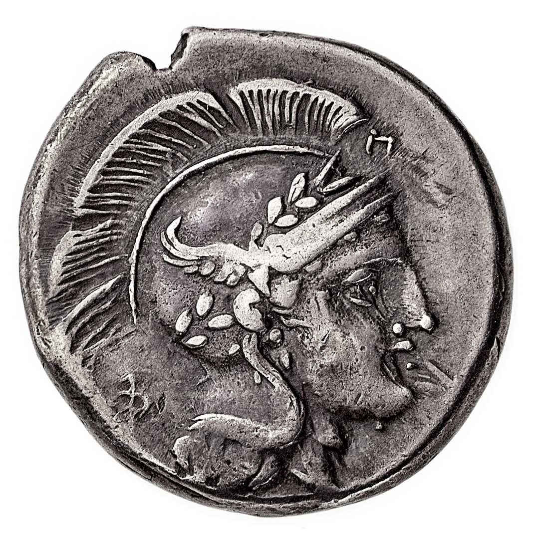 Velia - Didramma databile al periodo 300-280 a.C. - Diritto: testa di Atena a destra con elmo attico crestato e ornato da ali e alloro - Rovescio: leone a destra; sopra un grappolo d'uva - gr. 7,51 - Non comune - BB