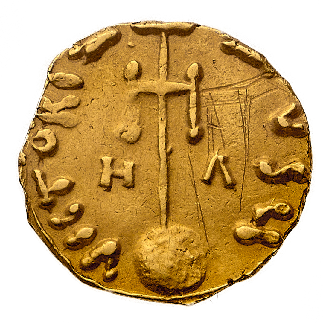 Tiberio III (698-708) - Tremisse - Zecca: Siracusa - Diritto: busto diademato e drappeggiato a destra - Rovescio: croce potenziata su globo - gr. 1,91 - Molto rara - Sigillata ("q.SPL")