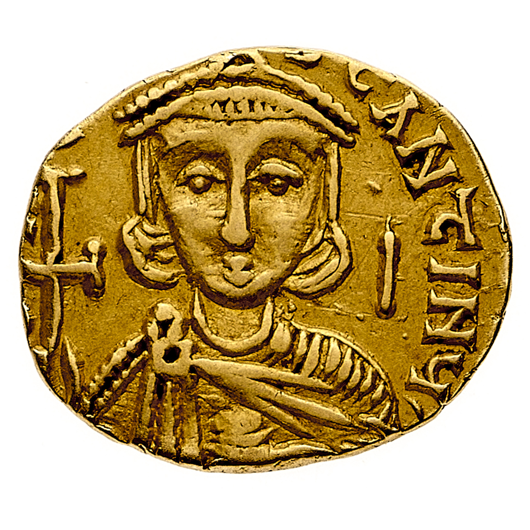 Leone III (720-741) - Tremisse databile al periodo 735-741 - Zecca: Siracusa - Diritto: busto coronato e drappeggiato dell'Imperatore, con un globo crucigero nella mano destra - Rovescio: busto coronato e drappeggiato di Costantino V, con una croce potenziata nella mano destra - gr. 1,31 - Molto rara - Graffiti, BB