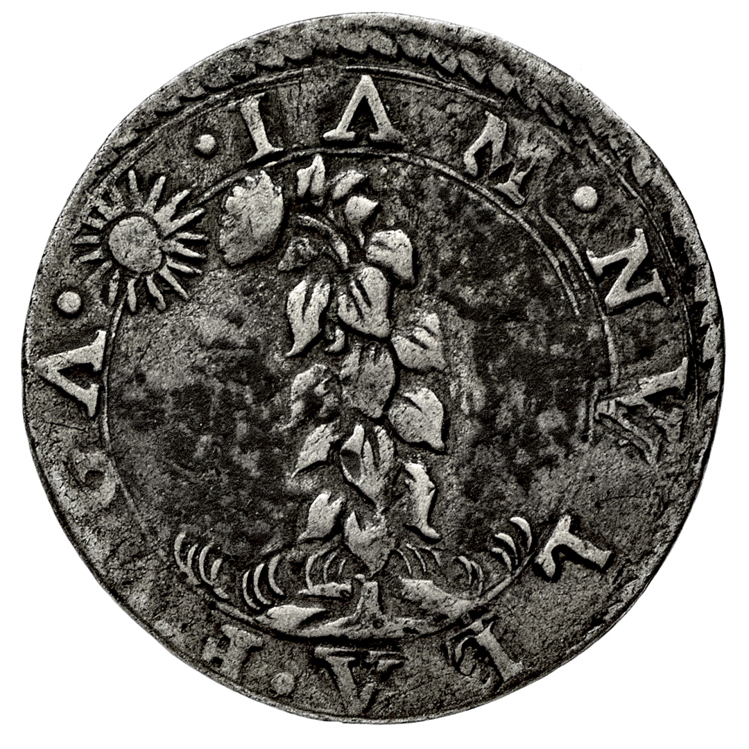 Vincenzo I Gonzaga (1587-1612) - Barbarina anonima - Diritto: Santa Barbara stante tiene con la mano destra la palma e si appoggia ad una torre - Rovescio: pianta di girasole con le foglie aperte verso il sole - gr. 1,95 - BB
