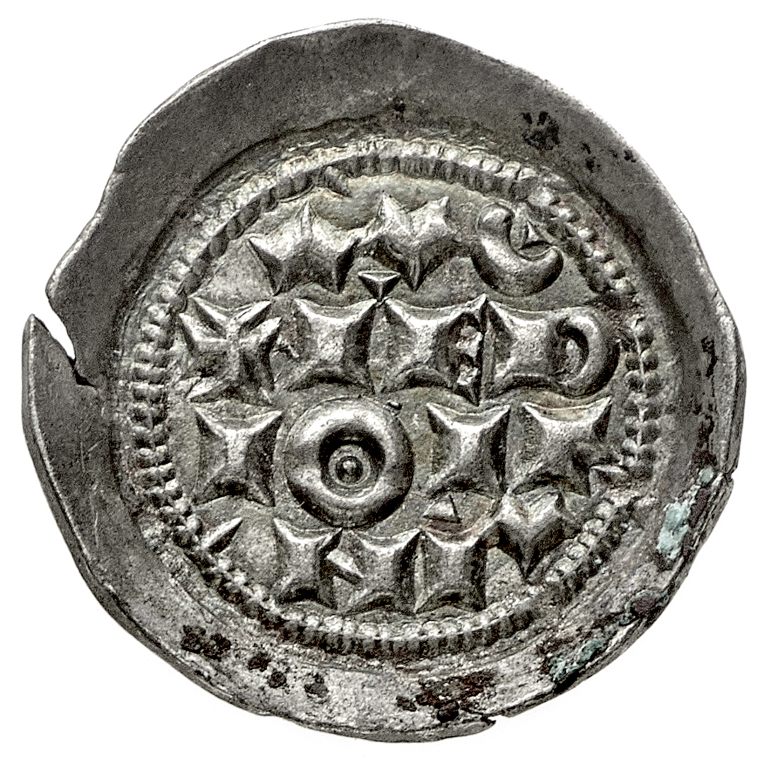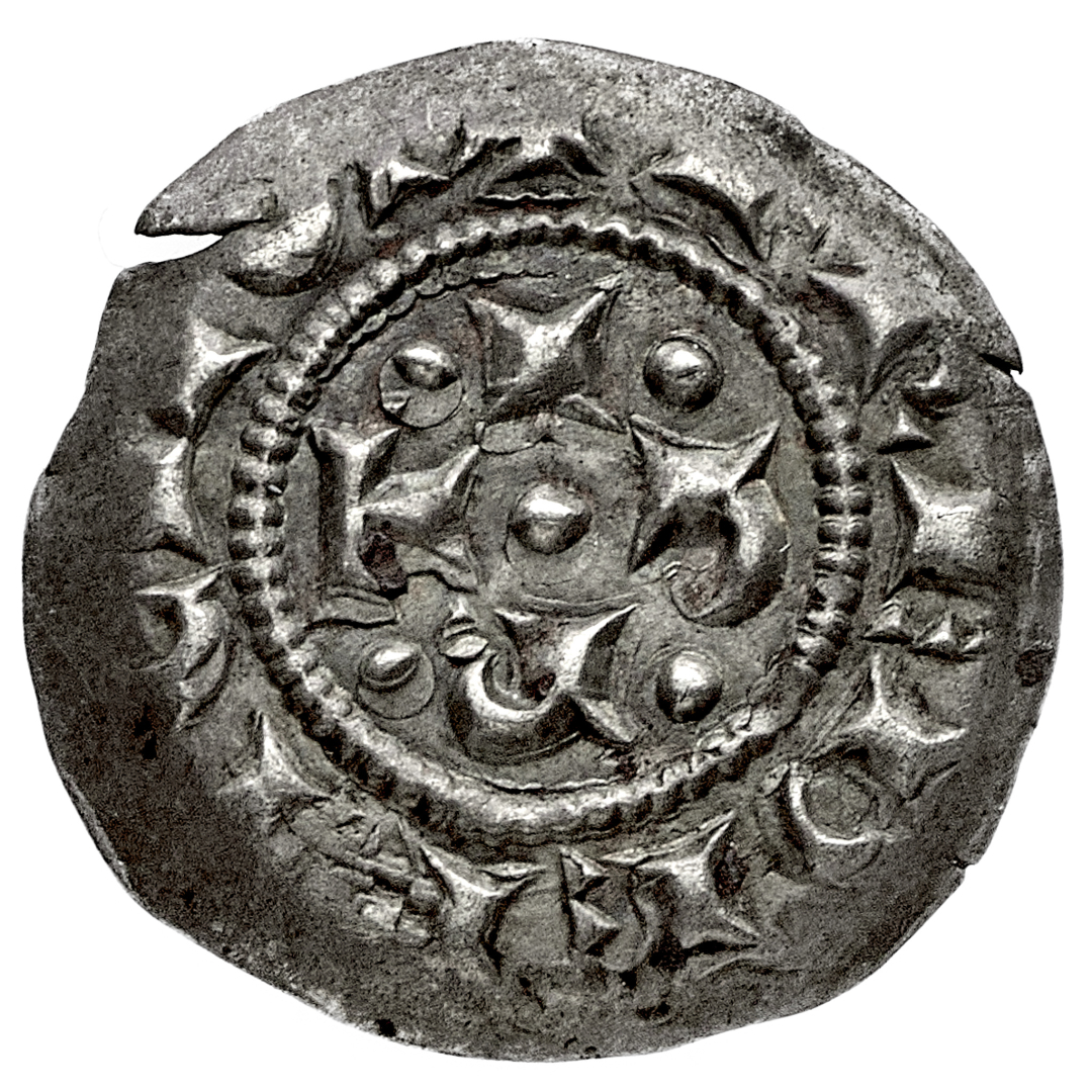 Federico I di Svevia (1152-1190) - Denaro scodellato - Diritto: monogramma - Rovescio: legenda su quattro righe orizzontali - gr. 0,93 - Lieve taglio al contorno, SPL - Corredata da cartellino di antica collezione