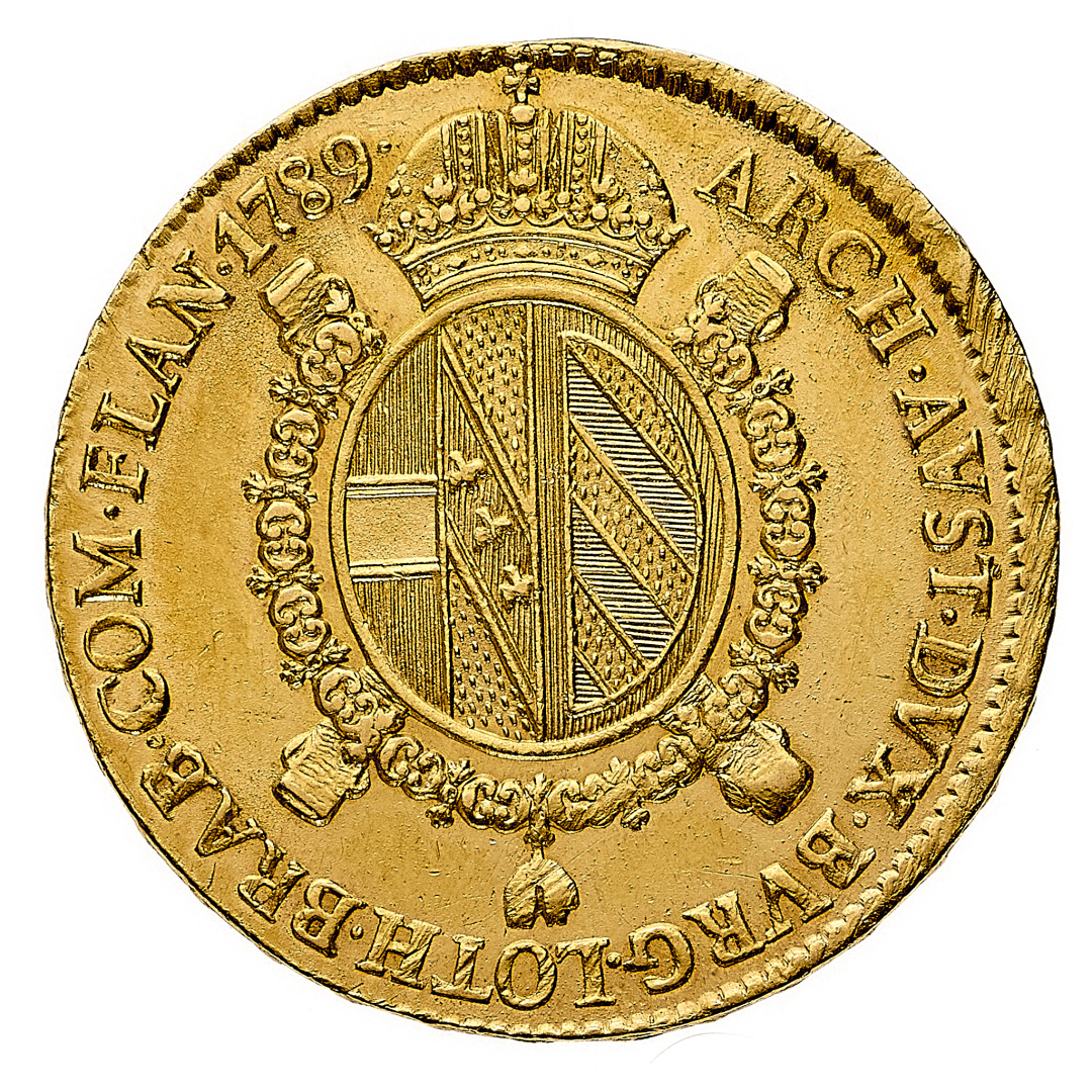 Giuseppe II d'Asburgo (1780-1790) - Sovrana 1789 - Diritto: testa laureata di Giuseppe II a destra - Rovescio: stemma coronato e circondato dal Collare del Toson d'Oro - gr. 11,11 - Lieve difetto al contorno, SPL