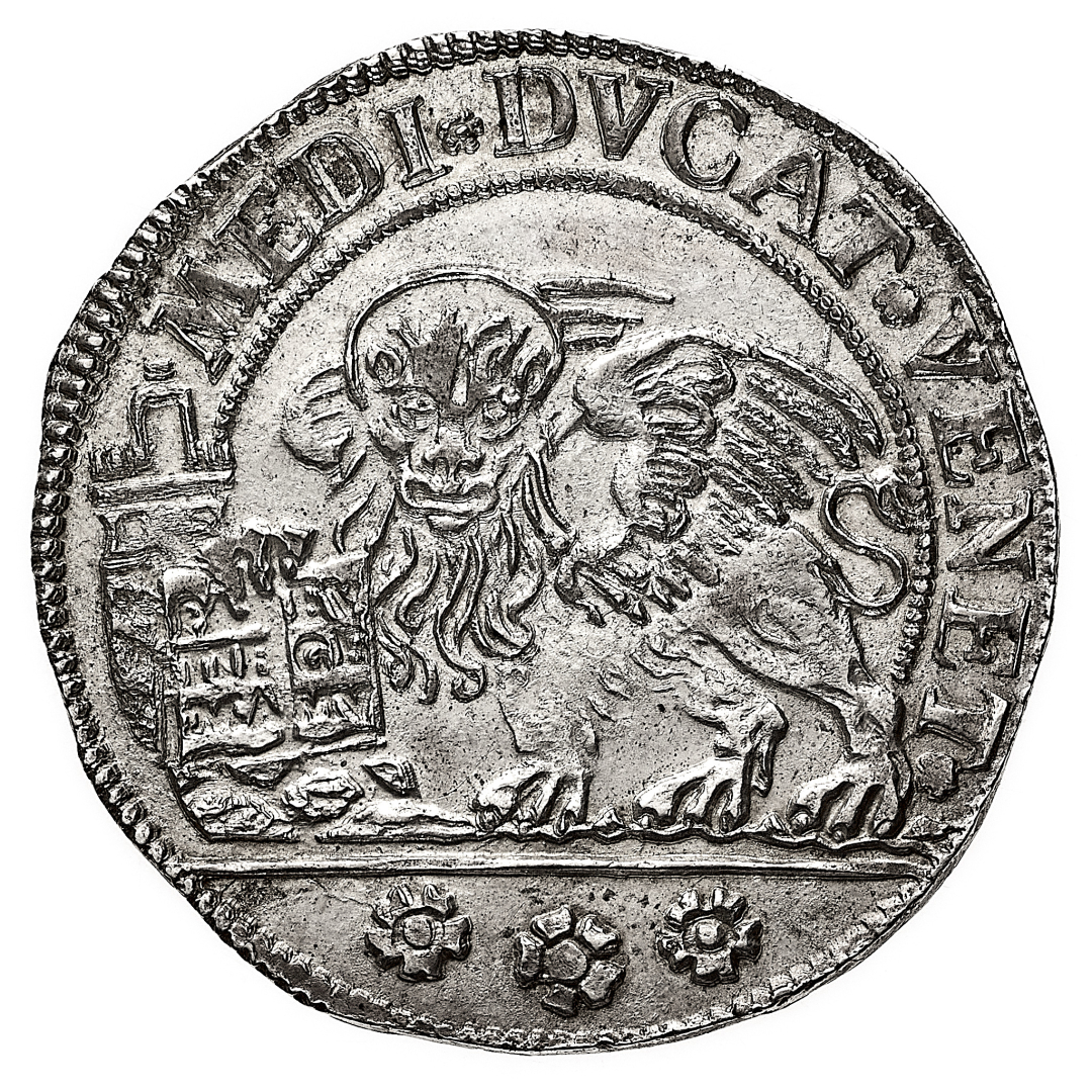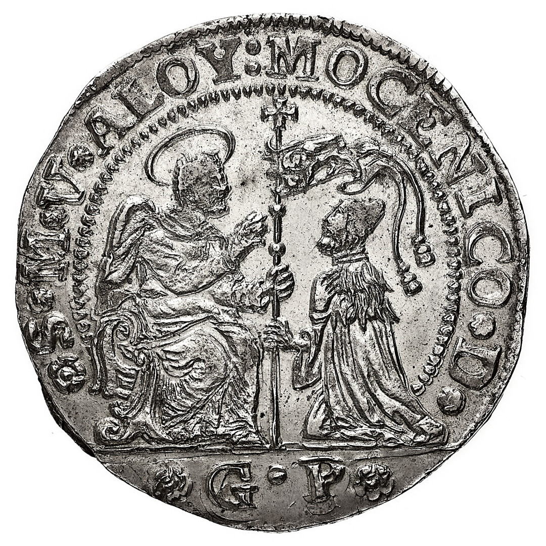 Alvise IV Mocenigo (1763-1778) - Mezzo Ducato - Zecca: Venezia - Diritto: il Doge genuflesso riceve da San Marco il vessillo della Repubblica - Rovescio: il leone alato stante a sinistra regge il Vangelo con la zampa anteriore destra - gr. 11,20 - Sigle GP - Non comune - Esemplare di inusuale freschezza, migliore di SPL