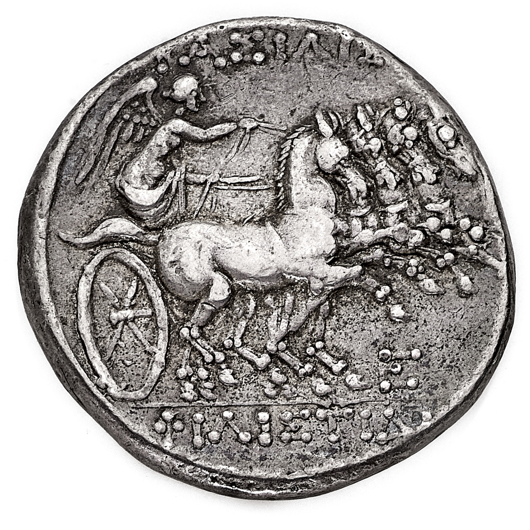 Siracusa - Periodo di Gerone II (275-215 a.C.) - 16 Litre - Diritto: testa velata e diademata di Filistide a sinistra; a destra, nel campo, una torcia - Rovescio: la Nike in quadriga al galoppo verso destra - gr. 13,57 - Migliore di BB