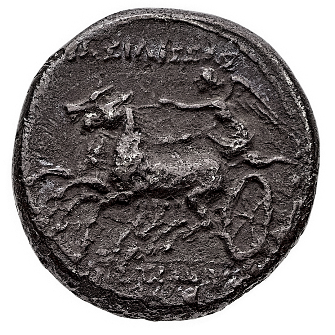 Siracusa - Periodo di Gerone II (275-215 a.C.) - 5 Litre - Diritto: testa velata e diademata di Filistide a sinistra - Rovescio: la Vittoria in biga al galoppo verso sinistra - gr. 4,24 - Rara - q.BB
