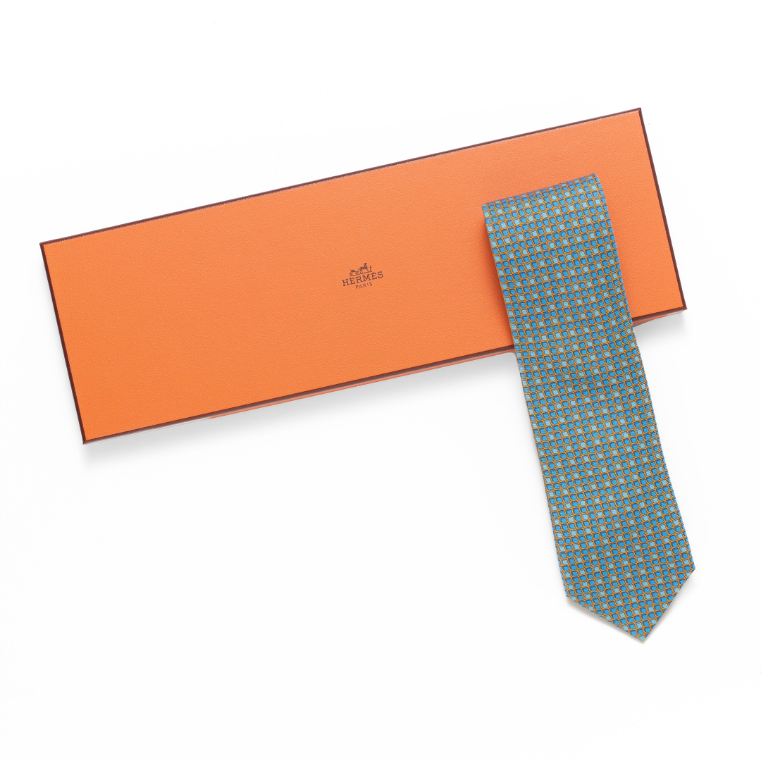 in seta, con fantasia nei toni dell'azzurro su fondo ocra.