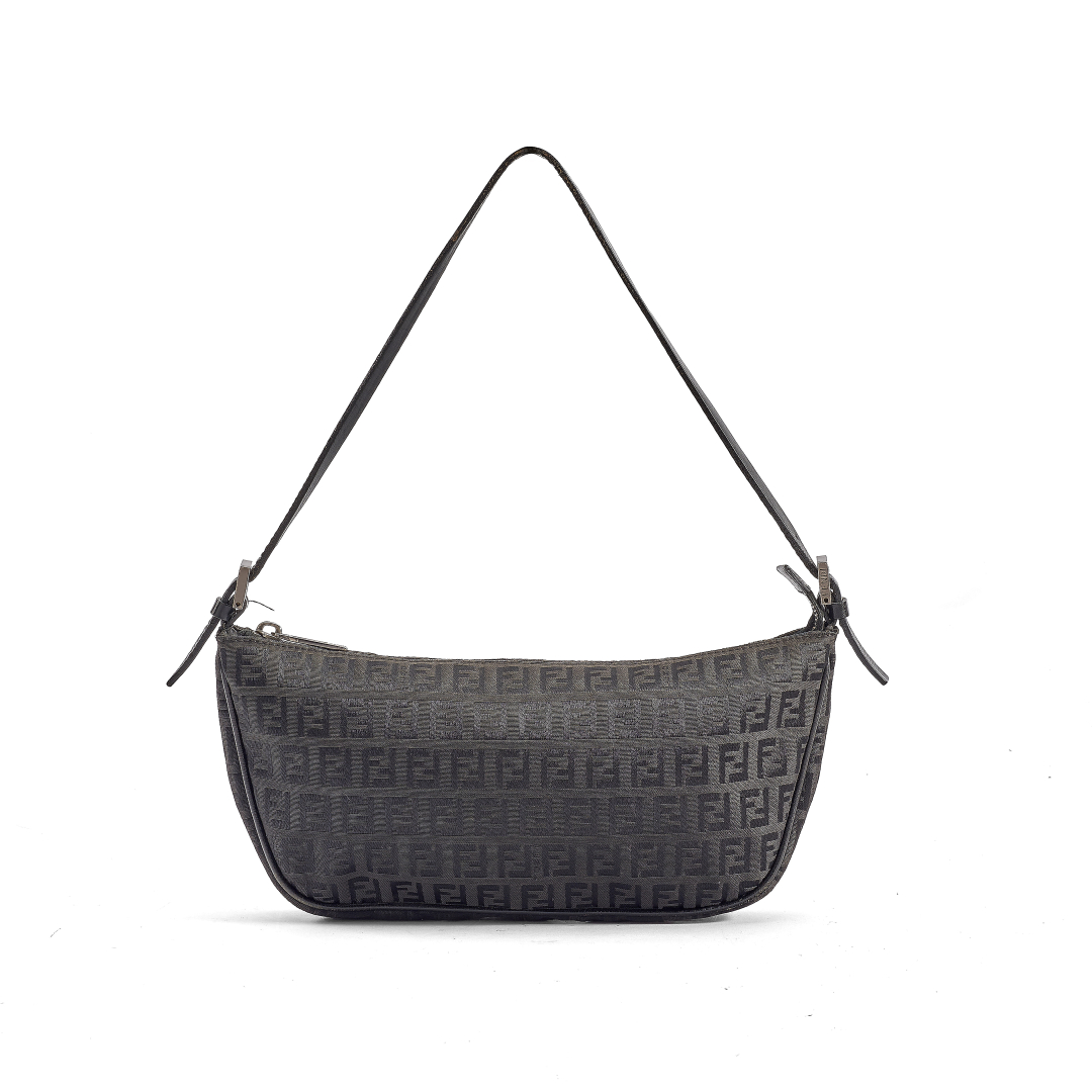 in tela Zucchino nera e dettagli in pelle in tinta, interno in tessuto nero logato. Manico regolabile in pelle nera. Chiusura con cerniera fermata da tiretto logato, Hardware in metallo brunito.