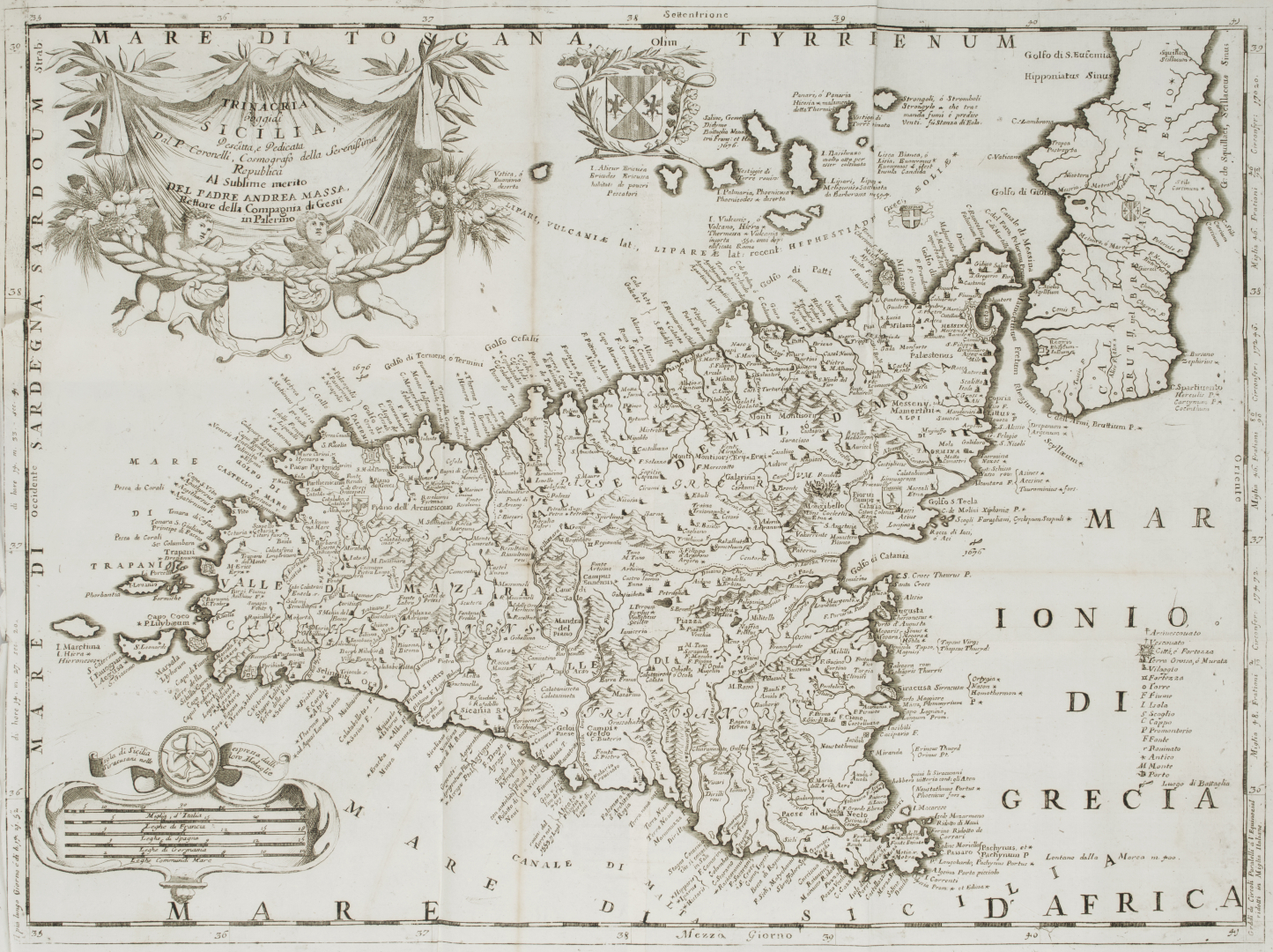 Coronelli, Vincenzo Maria. Lombardia, Piemonte, Savoja, Provenza, Milanese, Mantovano, Monferrata, Parmegiano, Modonese; Stato Ecclesiastico Roma, Umbria, Marche, Urbino; Regno di Napoli, Sicilia e Malta. [Venezia, circa 1706].