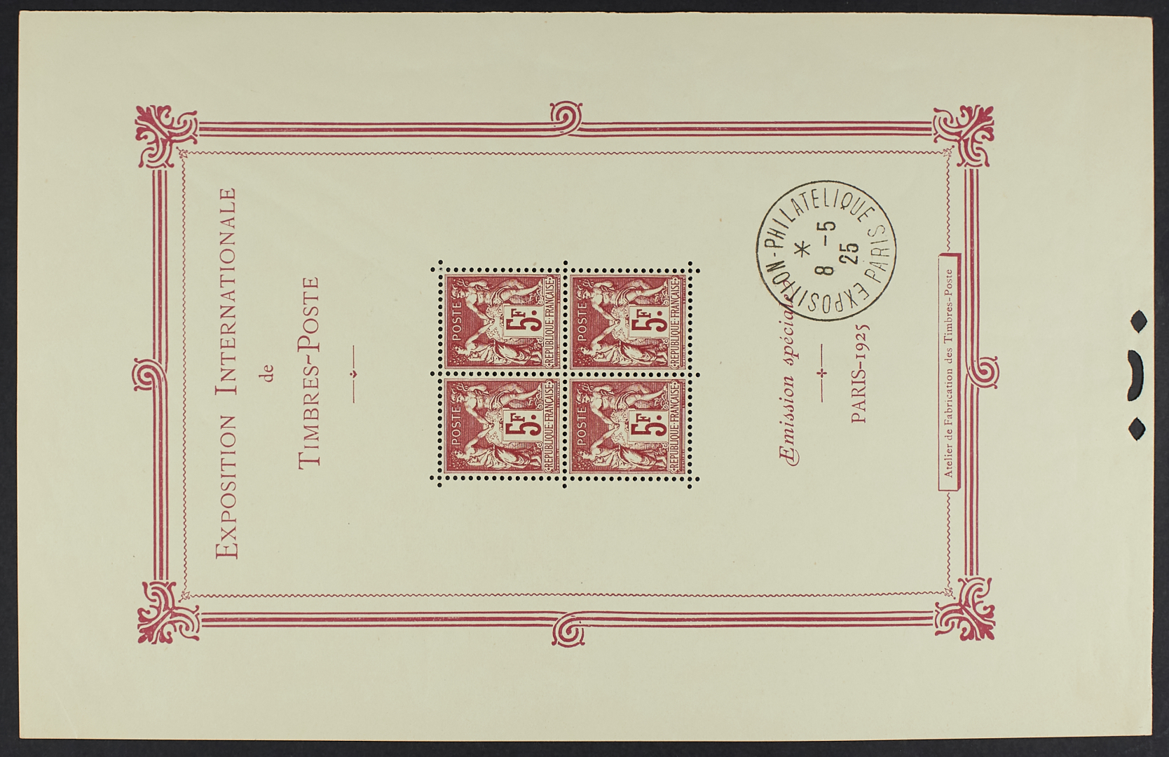1925 - Esposizione filatelica di Parigi 5 f. - Il foglietto con il cachet della manifestazione