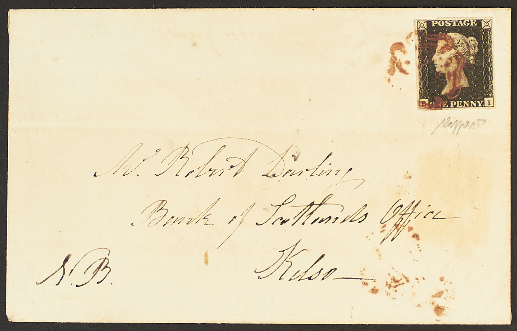 1840 - Prima emissione 1 p. nero - Insieme di sette lettere di qualità selezionata - Unito un esemplare sciolto usato e alcuni francobolli di Francia e Giappone - Un certificato