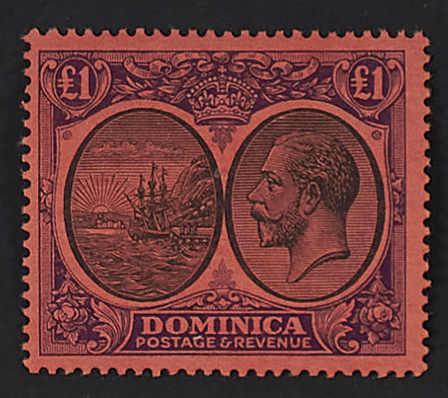 GIORGIO V 1 £. VIOLETTO E NERO SU CARTA ROSSA