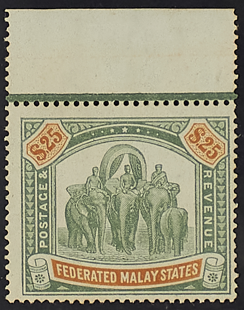 1928 - Sesta emissione 25 $ verde e arancio bordo di foglio superiore - Firma A. D.