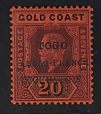 1916 - Occupazione anglo - francese 20 s. violetto e nero su carta rossa