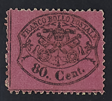 1868 - 80 c. rosa carminato "fragolone" - Raro - Cert. Cardillo - Firma Oliva
