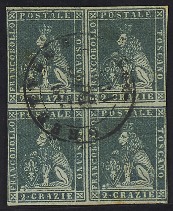 2 CR. VERDE AZZURRO SU CARTA GRIGIA BLOCCO DI QUATTRO