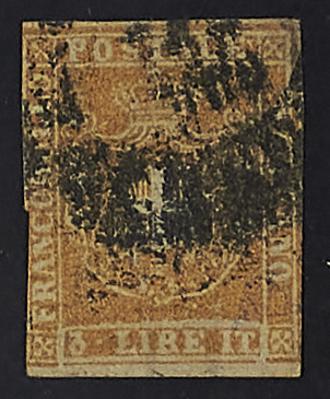 1861 - 3 L. ocra giallo - Da esaminare - Timbro Schlesinger