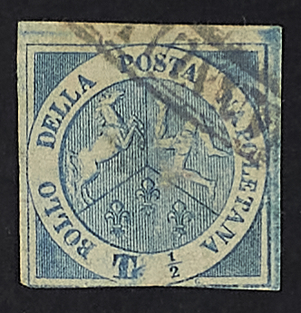 1860 - "Trinacria" 1/2 t. azzurro - Da esaminare - Firma A.G. Bolaffi
