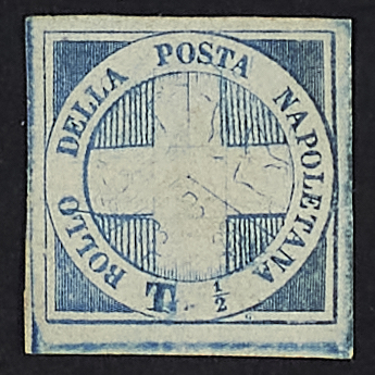 1860 - "Croce" 1/2t. azzurro - Timbro Brun