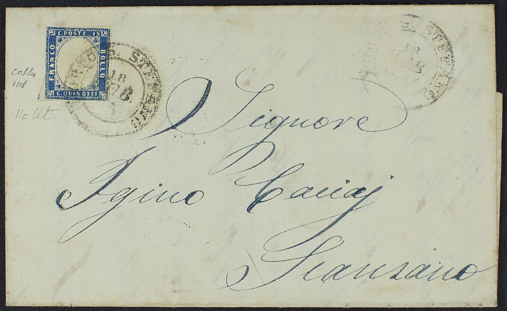 1863 - 15 c. azzurro latteo su lettera del 18 febbraio da Porto Santo Stefano a Scansano - Cert. Colla