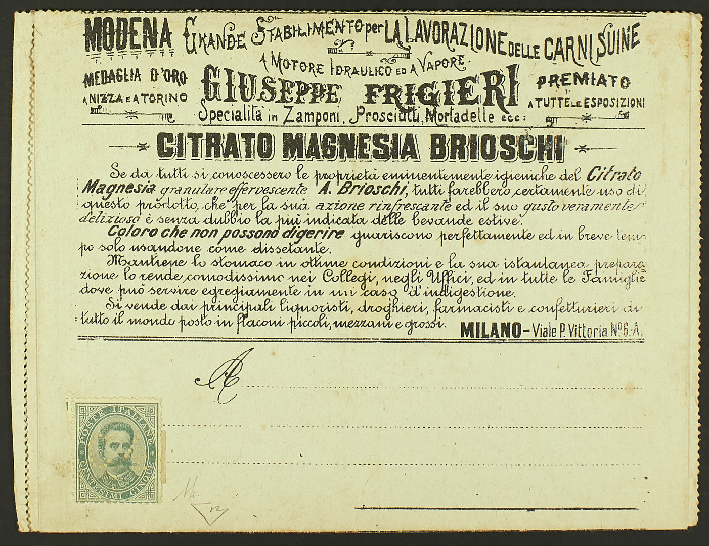 1887 - 4 c. / 5 c. verde su francalettera non viaggiata - Cert. Diena